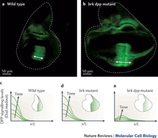 Schwank, G., Restrepo, S. & Basler, K. Growth regulation by Dpp: an essential role for Brinker and a non-essential role for graded signaling levels. Development 135, 4003–4013 (2008). Questions whether the graded distribution of DPP is relevant to growth control, based on the assumption that brk mutants (or brk dpp double mutants) show uniform DPP signalling. The authors also propose that DPP controls growth permissively in the centre of the discs, whereas growth in the periphery is independent of the DPP gradient.
