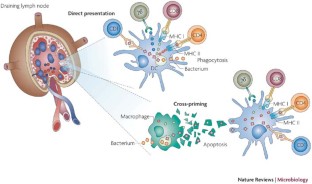 Winau, F. et al. Apoptotic vesicles crossprime CD8 T cells and protect against tuberculosis. Immunity 24, 105–117 (2006). The authors present mechanisms underlying the processing and presentation of antigens within vesicles from cells that undergo apoptosis as a result of bacterial infection. The studies provide further evidence for the efficacy of cross-priming induced by vaccines.