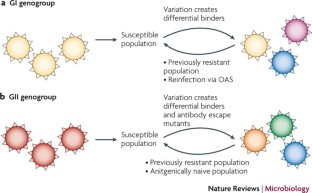 Lindesmith, L. C. et al. Mechanisms of GII.4 norovirus persistence in human populations. PLoS Med. 5, e31 (2008). This paper discusses the binding and antigenic differences between a panel of GII.4 noroviruses that evolved over 20 years, suggesting that herd immunity may select for novel variants over time.