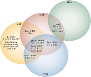 >60 cytokines signal via the Janus kinase (JAK) and signal transducer and activator of transcription (STAT) pathways; genetic evidence has established that these factors are essential to cytokine signalling