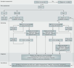 Future bladder cancer screening algorithms will apply traditional and molecular tests in a stepwise fashion on the basis of an individual patient's risk of disease development