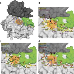 This work was supported by the US National Institutes of Health (NIH) grant DK052916 (to S.R.H.) and a Howard Hughes Medical Institute (HHMI) Research Training Fellowship for Medical Students (to Y.D.T.). M.F.W. is an investigator at the HHMI. We thank W. Li and W.T. Miller (Stony Brook University, New York, USA) for purified IGF1RK, and W.T. Miller for manuscript comments. Beamline X4A at the National Synchrotron Light Source, Brookhaven National Laboratory, a US Department of Energy facility, is supported by the New York Structural Biology Consortium. The New York University Protein Analysis Facility is supported by NIH Shared Instrumentation Grant S10 RR017990, National Institute of Neurological Disorders and Stroke grant P30 NS050276 and US National Cancer Institute core grant P30 CA016087 (to T.A.N.).