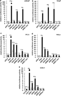 Cleutjens KB, van der Korput HA, van Eekelen CC, van Rooij HC, Faber PW, Trapman J . (1997). An androgen response element in a far upstream enhancer region is essential for high, androgen-regulated activity of the prostate-specific antigen promoter. Mol Endocrinol 11: 148–161.