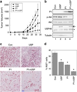 We thank Dr Wade Harper (Harvard Medical School) for providing USP46, USP7 and USP16 expression plasmids, and Dr Hui-Kuan Lin (University of Texas MD Anderson Cancer Center) for providing His-tagged ubiquitin construct. The Biostatistic Core at the Markey Cancer Center (University of Kentucky) provided assistant with the statistical analysis in our study. This work was supported by NIH R01CA133429 (TG), American Cancer Society RSG0822001TBE (TG), P20CA1530343 (UK GI SPORE) and R01DK48498 (BME).