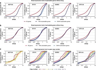 We thank the members of the laboratory for their comments on the manuscript. Yale Center for Genomic Analysis provided services for microarray labeling, hybridization and scanning. Bing Ren (Ludwig Institute for Cancer Research, La Jolla, CA, USA) provided critical help with sequencing the GRO-seq libraries. CBG is a PhRMA Foundation predoctoral fellow. Grants to THK from the Rita Allen Foundation, Sidney Kimmel Foundation for Cancer Research, Yale Comprehensive Cancer Center (CA-16359), Alexander and Margaret Stewart Trust supported this work. A portion of this work was also made possible by a grant from the National Cancer Institute (R01CA140485 to THK).