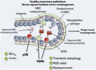 Debnath J, Mills KR, Collins NL, Reginato MJ, Muthuswamy SK, Brugge JS . The role of apoptosis in creating and maintaining luminal space within normal and oncogene-expressing mammary acini. Cell 2002; 111: 29–40.