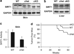 Wang RH, Sengupta K, Li C, Kim HS, Cao L, Xiao C et al. Impaired DNA damage response, genome instability, and tumorigenesis in SIRT1 mutant mice. Cancer Cell 2008; 14: 312–323.