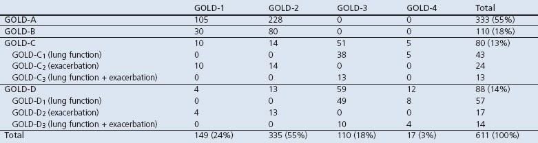 Table 2 Patient sample distributed according to the GOLD 1234 grades and ABCD groups classification