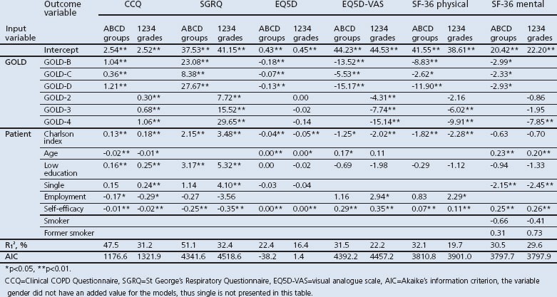 From: Are GOLD ABCD groups better associated with health status and costs than GOLD 1234 grades? A cross-sectional study