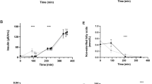 Summary: Insulin infused into a sheep fetus over a 3-hr period at the rate of ∼0.24 U·kg-1·h-1 increased fetal glucose uptake (utilization) from 4.4 ± 0.7 mg·min-1·kg-1 to 6.9 ± 0.9 mg·min-1·kg-1 as compared to a noninsulin control period. Insulin administration did not alter fetal oxygen consumption (8.6 ± 0.7 ml·min-1·kg-1 vs. 7.7 ± 0.7 ml·min-1·kg-1), umbilical blood flow (220 ± 1 ml·min-1·kg-1 vs. 209 ± 16 ml·min-1·kg-1), or the placental clearances of antipyrine (114 ± 7 ml·min-1·kg-1 vs. 109 ± 8ml·min-1·kg-1) and urea (24.5 ± 2.2 ml·min-1·kg-1 vs. 25.0 ± 2.1 ml·min-1·kg-1). Fetal plasma glucose concentration fell significantly (0.22 ± 0.01 mg·ml-1 to 0.16 ± 0.01 mg·ml-1) during insulin infusion. The insulin effect on fetal glucose uptake occurred over a range of maternal glucose concentrations (0.32 → 0.78 mg·ml-1), which were not altered by the infusion of insulin in the fetal compartment.