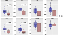Thirty-five preterm infants were studied longitudinally at 2–4 wk, 2–3 mo, and 5–6 mo CA. Cardiac control was assessed from spectral indices of heart rate variability (HRV) in the low frequency (LF) and the high frequency (HF) range, and the ratio of HF/LF indicating sympathovagal balance was calculated.