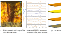 Laser-induced breakdown spectroscopy (LIBS) provides information about the elemental composition of materials. Briefly, focusing a pulse from a nanosecond laser onto the surface of an object under analysis generates a transient micro-plasma, which emits light upon relaxation. Recording the plasma emission on a spectrometer produces the LIBS spectrum, which features, sharp atomic emission peaks leading to the identification of the elements contained in the sample. The peak intensity or the integrated emission is related to the number density of each emitting species in the plume and this, in turn, with the concentration of specific elements in the ablated material [12–15]. LIBS analysis can be applied in situ, eliminating the need for sample removal and/or sample preparation. Considering that laser ablation is involved in a LIBS measurement, removal of a minute amount of material from the sample surface takes place with each laser pulse (mass removal on the order of a few nanograms), and so the technique is termed as micro-destructive. The trace left on the object surface is hardly visible by the naked eye. Actually, the diameter of the laser spot is in the range of 150–300 μm, with the mobile system used in this study, whereas its depth per pulse does not exceed a few micrometers, in the case of wall paintings [16]. To this end, LIBS can provide an equivalent of depth profile analysis, taking into account that each laser pulse removes from the surface a thin layer of material and therefore the subsequent pulse always probes the paint slightly deeper, in its stratigraphy, than the previous one [16, 17]. Finally, experimental equipment needed for LIBS is both simple and versatile, favoring the development of compact portable instrumentation, which can be employed in field analysis including campaigns at museums or historical and archaeological sites [18–20].