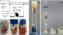 All Oddy tests were performed using a protocol similar to the modified British Museum 3-in-1 procedure [6]. Specifically, a 2 g sample of the material to be studied was placed in a 75 mL borosilicate boiling tube containing a smaller 0.8 mL borosilicate tube filled with deionized water (Milli-Q Direct 8). Freshly polished copper (Aldrich, 0.25 mm, 99.98%), silver (Aldrich, 0.25 mm, 99.9%), and lead (Alfa Aesar, 0.1 mm, 99.998%) coupons were fixed into small slits cut into the bottom of medical-grade #4 silicone stopper (SSI). The stopper was sealed onto the test tube using Parafilm reinforced with PTFE tape to prevent it from backing out while under pressure. Each sample and a control with no sample were studied in triplicate. The tubes were placed upright in a rack in a temperature controlled oven at 60 °C for 28 days.