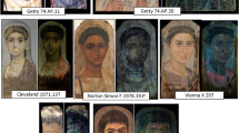 The reflectance spectra taken from the pink/reddish areas of the wrappings of C1, C5, I4 and F1 showed a weak absorption band centred at ca. 530–540 nm (Fig. 5a). The red dye extracted from safflower produces a distinctive reflectance spectrum with a single relatively sharp absorption feature around these wavelengths [31, 41]. Although the positioning of the absorption band in the pink/reddish areas of mummies C1, C5, I4 and F1 corresponds to safflower red, the weakness of the signal enabled safflower to only be tentatively identified as the source of colour. This is due to the very light and faded colouration left on these textiles. The result is in agreement with MSI observations of C1 and F1. In the case of mummies C2 and C3, the reflectance spectra of the reddish areas of the wrappings showed a weak absorption at ca. 545–555 nm (Fig. 5b). MSI observations had pointed to the presence of madder in these areas, but only weak and inconclusive structural features were observed in the reflectance spectra. Red ochre was identified in the painted areas present on the face of the cat mummy C2 and on the wrappings of Cr2 (Fig. 5c). In the case of red ochre, all the characteristic absorption features were evident, such as the two inflection points around 575–590 nm and 700 nm, the characteristic positive slope in the region above 600 nm, and the absorption band due to ligand field transition centred around 850–900 nm [31, 41]. Regarding the black and brown textiles, FORS spectra suggest that the colour may have been obtained by using tannins in combination with iron, as already found for basketry [42] and leather tanning [43]. Although spectral features are poor, the general trend of the spectra—with an inflection point occurring above ca. 730 nm (Fig. 5d)—has been highlighted as characteristic for a variety of hues in the range from light brown to black obtained with iron-tannin complexes [44]. In the case of light colours, such as yellow, beige, light orange, etc., the absence of distinguishing features in the FORS spectra (two examples are reported in Fig. 5d) was interpreted as the possible absence of colouring material, although the presence of yellow dyes, as suggested for F1, could not be excluded based solely on these data.