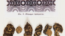 All the brown and black samples showed the presence of tannins. Tannins are a broad category of chemical compounds divided into two main categories, namely, hydrolysable and condensed tannins. Ellagitannins and gallotannins are classes of hydrolysable tannins, in which glucose units form polyester compounds with ellagic and gallic acid units, respectively. Condensed tannins are polymeric compounds of catechin, anthocyanidin or their derivatives, also referred to as proanthocyanidins [54]. The identification of the plant source of tannins is still very challenging by HPLC in most cases, as tannins are large molecules generally containing many isomers, which make the chromatographic separation very difficult [55]. Even with the adoption of mass spectrometry detection (HPLC–MS) [56,57,58], the common scenario with archaeological samples is to detect some of the degradation products of hydrolysable tannins (gallic acid, ellagic acid, hydroxybenzoic acids, etc.) [59, 60], or to observe clusters of m/z values that are indicative of the general presence of condensed tannins [59, 61]. This was the case for our samples. All dark samples, except for C3, showed the presence of ellagic acid ([M−H]− at 300.999 m/z), indicative of the use of ellagitannins. Additionally, the brown samples of I3, I6, Cr4 and F2 showed significant amounts of other degradation products of hydrolysable tannins, such as 4-hydroxybenzoic acid ([M−H]− at 137.024 m/z) and 3,4-dihydroxybenzoic acid ([M−H]− at 153.019 m/z). The brown and black samples from C3, I2, I5, Cr3 and Cr5 also showed the possible presence of condensed tannins, suggesting that more than one source of tannins were likely used to obtain very dark colours. It is worth highlighting that bitumen has also been hypothesised as a material used to decorate archaeological textiles, for example the late 5th millennium BCE textiles from the Cave of the Warrior (Jericho, Israel), by smearing and pressing of the material onto the textile [62]. As bitumen has to be targeted with specific analytical protocols [24, 63,64,65], this fell beyond the scope of this article. However, research is in progress to clarify the possible use of bitumen in this context.