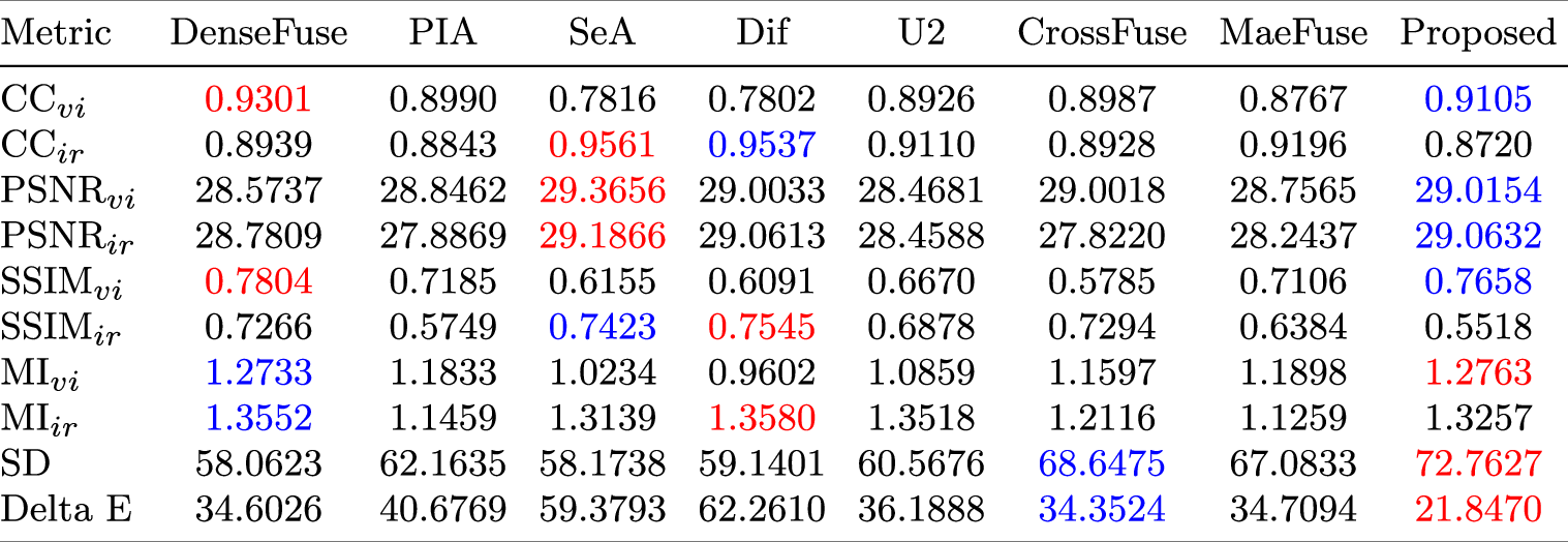 Table 3 Comparison of quantitative metrics for different fusion methods on the test dataset
