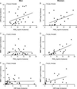 The vascular wall and PVAT from SV exhibited the greatest MMP-1,-2 release. An increase of MMP-1,-2 and/or a decrease of TIMP-1 quantities have been detected under inflammation only in vascular wall not in PVAT. These changes under inflammation were completely reversed by inhibition of mPGES-1. In obesity, C-reactive protein (CRP), biomarker of inflammation, and PGE2 levels were increased. PGE2 contents were positively correlated with some anthropometric parameters and plasmatic CRP in both genders, while the correlation with the plasmatic MMP-1 density was significant only in women.