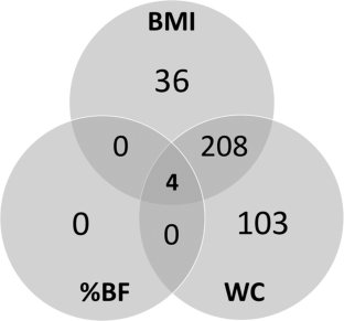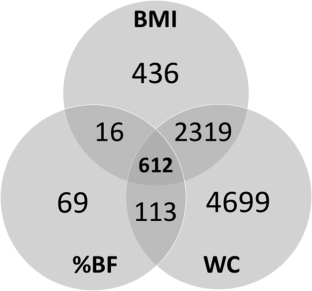 We interpret these general findings to indicate that highly significant regions of the genome (DMR) and synthesis pathways (GO) in waist circumference analyses are more likely to be associated with the presence of visceral/abdominal fat than more general measures of adiposity. Our findings confirmed numerous CpG sites previously found to be differentially methylated in association with adiposity phenotypes, while we also found new differentially methylated CpG sites and regions not previously identified.