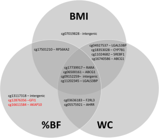 Demerath EW, Guan WH, Grove ML, Aslibekyan S, Mendelson M, Zhou YH, et al. Epigenome-wide association study (EWAS) of BMI, BMI change and waist circumference in African American adults identifies multiple replicated loci. Human Mol Gen. 2015;24:4464–79.