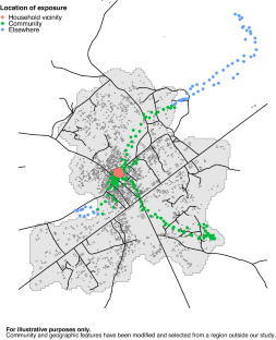 The datasets generated during and/or analyzed during the current study are not publicly available because this analysis included geolocated information considered to be personally identifiable information (PII). However, the authors have created a GitHub repository demonstrating the development of community boundaries as well as estimating surrounding building density and nearby roadways using a simulated GPS trajectory [https://github.com/dmedgyesi/GeospatialGhana].