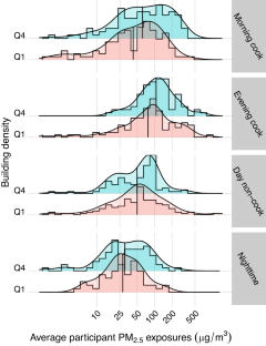 We used paired GPS and personal PM2.5 data to evaluate changes in exposure across location-time environments (e.g., household and community, during cooking and non-cooking hours), building density and proximity to roadways.