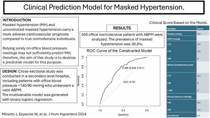 Minetto, J., Espeche, W., Leiva Sisnieguez, C.E. et al. “Clinical prediction model for masked hypertension diagnosed by 24-h ambulatory blood pressure measurements in a sample from specialized hospital.”. J Hum Hypertens 39, 199–204 (2025). https://doi.org/10.1038/s41371-024-00980-9