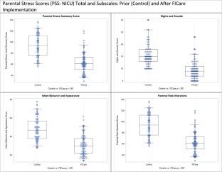 Case -control design with parental stress assessed before and after NICU-wide FICare implementation using Parent Stressor Scale: NICU (PSS:NICU) questionnaire. In addition, stratification by degree of participation evaluated associations with parental stress, parental-staff communication and discharge readiness. Questionnaires captured nursing perspectives on FICare.