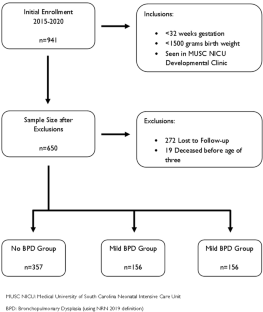 We included infants born <32 weeks’ gestation and birth weight <1500 g from 2015 to 2020 and excluded patients lost to follow-up or deceased before three years old. 650 patients were analyzed. BPD severity was defined as respiratory support at 36 weeks postmenstrual age. Risk factors of BPD were assessed. The primary outcome was composite NDD, including autism, attention deficit hyperactivity disorder, cerebral palsy, and/or learning disorders. Multiple logistic regression analyzed the association between BPD severity and outcomes, accounting for confounders.