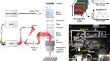 Figure 1 shows a diagram and photograph of the MASR system based on conventional microscopy. By adding a spectrometer in the imaging optics, an ultra-small spot reflectometry system could be built based on the super-resolution effect arising from the microsphere. In this architecture, a white-light light-emitting diode (LED) with a wavelength range of 430–700 nm was used as the light source and three lenses with two irises were used for the illumination beam shaping, where the two irises were used as aperture and field stops. The power of the light source was 5 W and the intensity was 4 mW/cm2 at the back aperture plane of the objective lens. The broadband light passing through the beam splitter illuminated the objective lens and microsphere sequentially and was then directed toward the sample to be imaged. Here, the microsphere could further magnify the sample image beyond the Rayleigh limit, where two types of soda lime glass (SLG) or polystyrene (PS) microspheres were evaluated in this study. It is important to note that the microsphere must be located in the optimal position between the sample and the objective lens to obtain a high-quality super-resolution image. Accordingly, the position of the objective lens was precisely controlled using a piezoelectric tube controller, and the position of the microsphere was controlled using a micromanipulator, as depicted in Fig. 1a. The objective lens turret was set up with the PZT scanner to carry a maximum of five objective lenses, and three objective lenses were prepared (namely, an Olympus LMPLFLN ×20, Nikon CF Plan EPI ELWD ×50, and Nikon CF Plan EPI ELWD ×100) for imaging different types of semiconductor devices with different magnifications. The microsphere was attached to the end of a micropipette so that its position could be precisely controlled by the manipulator, as illustrated in Fig. 1c. Although micropipettes are more commonly used for volumetric measurements, previous research has shown that they can also be used to manipulate microspheres50. Since a micropipette has a sharper tip than a glass rod (which is another method for manipulating microspheres), it can maneuver more freely between the objective lens and sample to be imaged. Thus, the microsphere attached to the micropipette was able to approach the sample without any interference with the objective lens, sample, or sample stage50. The micropipette had a sharp tip with a length of 4 mm and diameter of 10 μm. The total length of the micropipette was 50 mm. The broadband incident light illuminated samples producing multiple internal reflections in the thin film layers below the nanostructures of the top layer. The multiple reflections interfered with each other within the optical system including the microsphere and objective lens. After traveling to the first beam splitter, the broadband light passed through a tube lens, which had a ×1 magnification and an effective focal length of 220 mm, and was split into two beams. One beam was directed toward a scientific complementary metal-oxide-semiconductor image sensor with 6.5 × 6.5 µm pixels to capture the super-resolution image, whereas the other was directed to the optical fiber located in the imaging plane. The optical fiber with a 100-μm diameter core was coupled to the grating, which dispersed light spatially by wavelength, and the dispersed light was directed into the charged coupled device sensor. The sensor had 1044 pixel arrays with a wavelength range of 200–1100 nm (QE65 Pro, Ocean Optics, USA). MASR could provide the broadband spectra reflected from the spot with a diameter of 210 nm owing to the extremely high magnification (approximately ×530) enhanced by the microsphere.