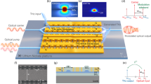 where \(\chi ^{\left( 2 \right)}\) represents the second-order nonlinear susceptibility. ω and Δω are the central frequency and the spectral width of the pump laser pulse, respectively, and Ω represents the frequency of the generated THz waves. \(E_{\rm {p}}\left( {\omega {^\prime} + \Omega } \right)\) and \(E_{\rm {p}}^ \ast \left( {\omega {^\prime} } \right)\) are the electric fields of the pump laser corresponding to different frequency components. The electric field E(Ω) of the generated THz waves is proportional to the nonlinear polarization P(Ω). Over the past decades, numerous techniques have been developed to enhance THz generation efficiency, achieve narrow THz bandwidth, and decrease THz-wave decay in LN crystals31,32,33. In particular, it has been recently shown that giant enhancement of the optical nonlinearity can be achieved at THz-frequencies by stimulated phonon-polaritons in LN crystals pumped by a femtosecond laser pulse, where ionic contributions to light–matter interaction become significant11. While the underlying mechanisms under different excitation conditions merit further investigation, it is experimentally evident that tunable THz pulses can be generated in nonlinear LN crystals by means of ultrashort laser pulses in the range from a few tenths of THz to a few THz11,31,32.