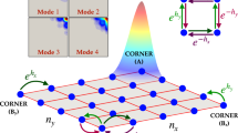 where \(\hat a_n^{\dagger}\) and \(\hat a_n\) are the bosonic creation and annihilation operators at sites n; t is the hopping strength, and \(g \in {\mathbb R}\) represents a “non-Hermitian external field” (Fig. 1b). In 2D, the Hatano–Nelson model reduces to a quantum Hall system for spatially varying imaginary values of g. When subject to periodic boundary conditions, the Hatano-Nelson lattice supports a set of delocalized states with pair-wise complex eigenvalues (see Fig. 1c). On the other hand, under open boundary conditions the eigenvalues are entirely real, whereas the eigenmodes exhibit non-Hermitian skin effects and the energy distribution in the array tilts towards one of the two ends (see Fig. 1d). The directionality and strength of the power imbalance across the array is dictated by the sign and value of the field parameter g. Recently, this type of lattice has been demonstrated in acoustic systems10, mechanical metamaterials29,30 and electrical circuits31,32, and also proposed in elastic media33 and cold atoms20. In optics, such lattices have been only implemented in synthetic dimensions, leading to the observation of light funneling with interface localization12, non-Hermitian bands with arbitrary winding numbers13, and complex-energy braiding14. However, the realization of such non-reciprocal coupling processes in real space have so far remained difficult if not elusive34,35,36.