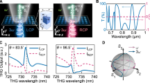 where φd is the propagation phase46, φPB is the PB phase and φχRL and φχLR refers to the different chiral phase delays for the working LCP light (RCP incidence) and RCP light (LCP incidence) respectively \((\vert\varphi_{\chi RL}\vert \ne \vert \varphi_{\chi LR}\vert)\).