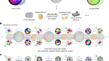 where \(\alpha ,\delta :U\longrightarrow {\mathbb{R}}\) are smooth maps defining a smoothly varying fast axis \((\cos (\alpha ){e}^{-i\delta /2},\sin (\alpha ){e}^{i\delta /2})\), and \(\Delta :U\longrightarrow {\mathbb{R}}\) the corresponding smoothly varying retardance. Note that spatial dependence has been suppressed here for clarity.