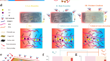 The working mechanism and measurement of the proposed DC-ThEG for the detection of liquid-state water in the air are exhibited in Fig. 5a–c. When the silk fibroin between the two thermoelectric leg chains absorbs water molecules, its dielectric constant increases, resulting in an increase in the capacitance of the DC-ThEG. In contrast, the dielectric constant of the silk fibroin declines when the silk fibroin desorbs water molecules, leading to a decrease in the capacitance of the DC-ThEG. The above working mechanism combined with the differential absorption behaviors of silk fibroin for different-state water in the air (i.e., gas and liquid states) allows the developed DC-ThEG to detect the existence of liquid-state water in the air. In the experiment, a test setup was built to verify this characteristic of the fabricated device, as shown in Fig. 5a. Two humidity controllers based on different working principles were separately used to supply gaseous- and liquid-state water molecules to simulate the corresponding air conditions, and an LCR meter was applied to trace the real-time capacitance change of the proposed DC-ThEG.