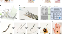 We further developed a printed circuit board to support the functionalities of the ISMA. A conductive microneedle patch was designed with an extended lead that could be bent to the same plane as the circuit. This phenomenon enabled a compact connection between the assembled microneedle array and the supporting circuit. The ISMA was integrated with a printed circuit to form a demonstration system. Figure 5a, b depict the logic and pathways for signal conditioning, processing, and wireless transmission in the ISMA system, where the details of each labeled component are discussed in Figs. S5–S13 (Supplemental Material). The printed circuit boards were small enough (65.41 × 36.54 × 4.88 mm) to fit comfortably to the skin for potential wearable applications (Fig. 5c and Fig. S14, Supplemental Material).