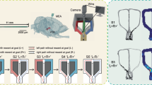 The rats were deeply anesthetized with 5% isoflurane in oxygen-enriched air before the surgical operation. Each rat was fixed in a stereotactic apparatus with nontraumatic ear bars and was anesthetized with 1–2% isoflurane in oxygen-enriched conditions. During the operation, the depth of anesthesia was checked regularly by examining the corneal and paw withdrawal reflexes. An incision was cut from the midline scalp to expose the skull. After drilling a 2 × 2 mm hole in the skull, MEA was implanted into PAG (AP: –7 mm, ML: –0.9 mm) at a constant speed of 2 μm/s using a micropositioner and paused for 2~3 min every 200 μm implanted. The MEA was attached to the skull with 5 screws and dental cement (Fig. 1a). To improve the detection SNR, metal wires were used to connect the ground with skulls and MEA. After craniotomy, the rats were intraperitoneally injected with 45,000 units of penicillin to reduce inflammation. The rats recovered for 3~5 days before the start of behavioral testing (Fig. 1b). During the adaptation period, we placed the rats gently in the center of the test box every day and the rats could explore freely in the experimental box for 20 min to fully adapt to the experimental environment. The room remained quiet and consistent with the experimental conditions during the adaptation process.