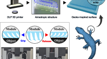Li, S. et al. Switchable Adhesion for Nonflat Surfaces Mimicking Geckos’ Adhesive Structures and Toe Muscles. ACS Appl. Mater. Interfaces 12, 39745–39755 (2020).