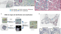 The composition of the immune cell infiltrate differs according to its location. As previously described, DCIS-associated stromal immune cells mainly consist of CD4+ T cells [4, 11,12,13]. Here, we observed that intraductal immune cells predominantly comprised CD68+ macrophages and CD8+ T cells. When stratified into intraepithelial and intraluminal cells, we observed that the majority of intraepithelial cells were CD8+ T cells and that intraluminal cells mainly comprised CD68+ macrophages. These data illustrate the different biological roles of these cells, since CD8+ T cells are cytotoxic T lymphocytes that are required to be in close proximity of the neoplastic cells, whereas CD68+ macrophages clean up necrotic cell debris and can rather be found in the lumen of the affected ducts.