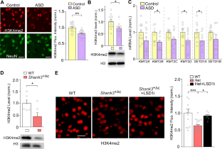 Large-scale genetic studies have revealed that the most prominent genes disrupted in autism are chromatin regulators mediating histone methylation/demethylation, suggesting the central role of epigenetic dysfunction in this disorder. Here, we show that histone lysine 4 dimethylation (H3K4me2), a histone mark linked to gene activation, is significantly decreased in the prefrontal cortex (PFC) of autistic human patients and mutant mice with the deficiency of top-ranking autism risk factor Shank3 or Cul3. A brief treatment of the autism models with highly potent and selective inhibitors of the H3K4me2 demethylase LSD1 (KDM1A) leads to the robust rescue of core symptoms of autism, including social deficits and repetitive behaviors. Concomitantly, LSD1 inhibition restores NMDA receptor function in PFC and AMPA receptor-mediated currentsĀ in striatum of Shank3-deficient mice. Genome-wide RNAseq and ChIPseq reveal that treatment of Shank3-deficient mice with the LSD1 inhibitor restores the expression and H3K4me2 occupancy of downregulated genes enriched in synaptic signaling and developmental processes. The immediate early gene tightly linked to neuronal plasticity, Egr1, is on the top list of rescued genes. The diminished transcription of Egr1 is recapitulated in PFC of autistic human patients. Overexpression of Egr1 in PFC of Shank3-deficient mice ameliorates social preference deficits. These results have for the first time revealed an important role of H3K4me2 abnormality in ASD pathophysiology, and the therapeutic potential of targeting H3K4me2 demethylase LSD1 or the downstream molecule Egr1 for ASD.