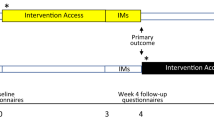 Sensitivity analyses were completed for variation in Bayesian priors or model used, and to assess impact of outliers and missing data imputation (Supplementary Figs. 4–7). There was no considerable variation in the posterior distributions of our model parameters when varying the Bayesian prior or model used. Outliers were identified as observations with large residuals and large Cook’s distance and leverage; analyses excluding these outliers led to the same pattern of results. In the final analyses, only two participants (one on immediate arm, and one on delayed arm) had one value in their week 4 daily IM diary imputed; analyses excluding these participants also led to similar results (Supplementary Information and Supplementary Fig. 7).