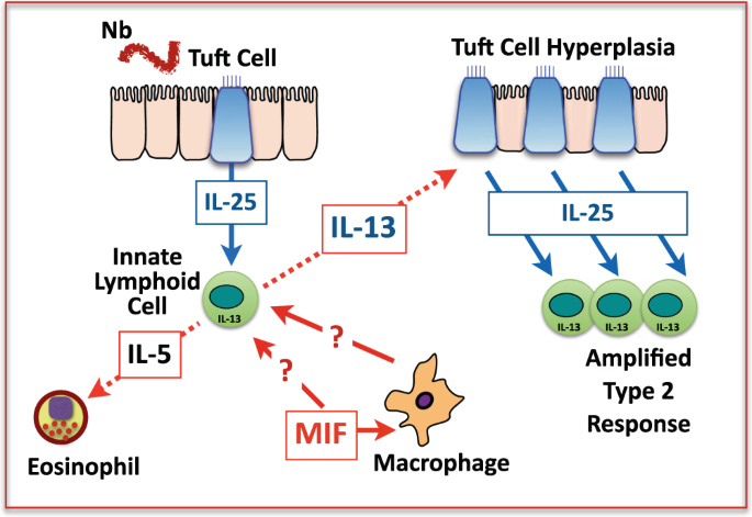 Varyani, F., Löser, S., Filbey, K.J. et al. The IL-25-dependent tuft cell circuit driven by intestinal helminths requires macrophage migration inhibitory factor (MIF). Mucosal Immunol 15, 1243–1256 (2022). https://doi.org/10.1038/s41385-022-00496-w