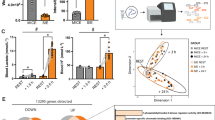 Subjects performed either 6 sprint interval training sessions which consisted of 6 × 30 s all-out cycle ergometer sprints with 4 min of recovery between sprints or 6 moderate intensity continuous training (MIT) sessions which consisted of ergometer cycling at a constant intensity of 60% VO2peak and cycling cadence of 60 revolutions per minute, initially 40 min, increasing to 60 min by session 3–6 over a 2-week period1. All sessions were monitored and conducted in an exercise laboratory. VO2peak was determined during a graded exercise capacity test 1 week before the exercise intervention and ~96 h after the last exercise session using the cycling ergometer test (Ergoline 800 s; VIASYS Healthcare, Germany) as described1,30. The two training programs were not designed to have similar workloads, and primarily due to the shorter total exercise time, SIT produced less workload than MIT31.