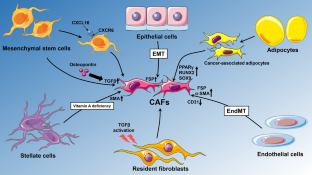 Yu Y, Xiao CH, Tan LD, Wang QS, Li XQ, Feng YM. Cancer-associated fibroblasts induce epithelial-mesenchymal transition of breast cancer cells through paracrine TGF-beta signalling. Br J Cancer. 2014;110:724–32.