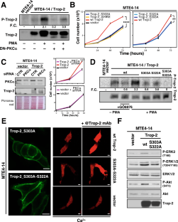 Mori Y, Akita K, Ojima K, Iwamoto S, Yamashita T, Morii E, et al. Trophoblast cell surface antigen 2 (Trop-2) phosphorylation by protein kinase C alpha/delta (PKCalpha/delta) enhances cell motility. J Biol Chem. 2019;294:11513–24.