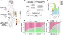 Approximately 10–30% of patients with metastatic BC develop CNS metastases. CNS metastasis is clinically classified into two major metastatic phenotypes: parenchymal metastasis [18, 19] and LM. In parenchymal metastasis, tumor cells enter the parenchyma through the endothelium surrounding the vasculature and the connected astrocytes, thereby causing perivascular proliferation [20,21,22]. In LM, tumor cells enter the CSF compartment and adhere to the pia mater surrounding the brain and spinal cord [2, 8, 23,24,25]. As revealed by histopathological analysis, our xenograft model demonstrated two major subtypes of CNS-metastatic cells: (1) tumor cells adhered to the blood–brain barrier and (2) tumor cells colonized the pia mater in the entire brain section (Supplementary Fig. S1A). Analysis using the IVIS Spectrum In Vivo Imaging System (IVIS) combined with microcomputed tomography (microCT) revealed MDA-MB-231 cells undergoing obvious colonization in the lung, brain, and spinal cord in the seventh week after IC injection (Fig. 1A); this supported that our xenograft mouse model had two CNS-metastatic subtypes. To investigate the mechanism of leptomeningeal-specific metastasis in TNBC, we established leptomeningeal-tropic TNBC cell lines (LeptoM1, LeptoM2, and LeptoM3) derived from MDA-MB-231 through a series of in vivo selections (Fig. 1B). The photon flux signals represented isolated LeptoM2 and LeptoM3 cells that primarily colonized in the brain and spinal cord but not in the lung or the liver, unlike LeptoM1 cells ex vivo (Supplementary Fig. S1B). The metastatic percentage in multiple organs was calculated by IVIS ex vivo. We detected a 100% specificity of the spinal cord and brain colonization in mice injected with LeptoM3 cells unlike in mice with brain-tropic (BrM3) and MDA-MB-231; however, metastasis was not detected for any other organs (Fig. 1C and Supplementary Fig. S1B). Combined with microCT analysis, IVIS was used to detect the specific location of the photon flux signal in mice. The results indicated that LeptoM3 specifically colonized the spinal cord tissues but did not cause spinal bone erosion (Fig. 1D). Further, the BrM3 cells specifically colonized the brain in mice (Supplementary Fig. S1C). Further, histopathology was used to confirm the LeptoM3 cells infiltrating location in the brain and spinal cord. After 7 weeks of IC injection, the LeptoM3 cells colonized the pia mater in brain sections and adhered to and invaded the nerve tissues in the leptomeningeal space of spinal sections (Fig. 1E). Moreover, immunohistochemical (IHC) staining was used to detect the circulating LeptoM3 cells in the leptomeningeal space of the lumbar spine and those adhered to the nerve tissues (Fig. 1F). Early LM was detected among mice in the third week of injection with LeptoM3 cells, whereas the parental and BrM3 cell signals were undetectable till the fourth or fifth week after injection (Fig. 1G). Compared with the MDA-MB-231 groups, the survival rate of mice injected with LeptoM3 cells was decreased significantly (Fig. 1H; p = 0.0124). Likewise, compared with the BrM3 groups, the survival rate of mice injected with LeptoM3 cells was decreased significantly (Fig. 1H; p = 0.0242). These results indicated that isolated LeptoM3 cells caused specifically early LM and poor survival in vivo.