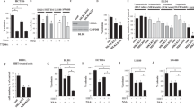 RNA was extracted with the RNeasy RNA isolation kit (Qiagen) as previously described60,61,62,63,64. On-membrane DNase digestion was performed during RNA extraction to eliminate contamination of genomic DNA. Reverse transcriptase reactions were performed using a SuperScript First-strand Synthesis System (Invitrogen). SYBRgreen real-time PCR reactions were performed on an ABI Prism 7500 system with the following primers: TCL, 5′-CGGCTGCAATGGACATGAG-3′ and 5′-GGCACGTATTCCTCTGGGAAG-3′; MRTF-A, 5′-ACCGTGACCAATAAGAATGC-3′ and 5′-CCGCTCTGAATGAGAATGTC-3′; hMOF, 5′- GAAGGAGCATGAGGCGATCA-3′ and 5′-TTTCGTAGTTCCCGATGTGGAT-3′. Ct values of target genes were normalized to the Ct values of a housekeekping control gene (18s, 5′-CGCGGTTCTATTTTGTTGGT-3′ and 5′-TCGTCTTCGAAACTCCGACT-3′) using the ΔΔCt method65 and expressed as relative mRNA expression levels compared to the control group which is arbitrarily set as 1. All experiments were performed in triplicate wells and repeated three times.
