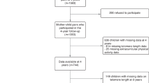 This study was funded by Instituto de Salud Carlos III/Agencia Estatal de Investigación, grant number PI18/00825 Project: ‘Dieta y actividad física en embarazo y tras el nacimiento y longitud del telómero en niños y adolescentes: Proyecto TeloDiPA’ and Unión Europea (FEDER) ‘Una manera de hacer Europa’; Generalitat Valenciana (GVA/2021/191); D.S.M. holds a postdoctoral grant by the Flemish Scientific Fund (FWO grant 12X9620N). In Sabadell, this study was funded by grants from Instituto de Salud Carlos III (Red INMA G03/176; CB06/02/0041; PI041436; PI081151 incl. FEDER funds; PI12/01890 incl. FEDER funds; CP13/00054 incl. FEDER funds, PI15/00118 incl. FEDER funds, CPII18/00018), CIBERESP, Generalitat de Catalunya-CIRIT 1999SGR 00241, Generalitat de Catalunya-AGAUR (2009 SGR 501, 2014 SGR 822), Fundació La marató de TV3 (090430), Spanish Ministry of Economy and Competitiveness (SAF2012-32991 incl. FEDER funds), Agence Nationale de Securite Sanitaire de l’Alimentation de l’Environnement et du Travail (1262C0010), EU Commission (261357, 308333, 603794 and 634453). We acknowledge support from the Spanish Ministry of Science and Innovation and the State Research Agency through the ‘Centro de Excelencia Severo Ochoa 2019–2023’ Program (CEX2018-000806-S) and support from the Generalitat de Catalunya through the CERCA Program. In Asturias, this study was funded by ISCIII: PI04/2018, PI09/02311, PI13/02429, PI18/00909 co-funded by FEDER, ‘A way to make Europe’/‘Investing in your future’, Obra Social Cajastur/Fundación Liberbank and Universidad de Oviedo. In Valencia, this study was supported by grants from Instituto de Salud Carlos III [FIS-FEDER: 13/1944, 16/1288, 19/1338; Miguel Servet-FSE: MS15/0025, MSII20/0006 incl. FEDER funds], Generalitat Valenciana [AICO/2020/285] and Gobierno de España through Ministerio de Universidades under the grant CAS21/00008. The funders had no role in the design of the study; collection, management, analysis and interpretation of the data; preparation, review or approval and submission of the manuscript.