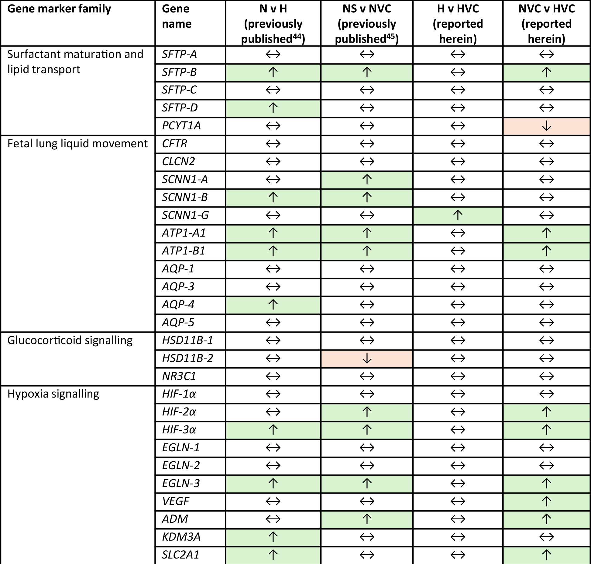 Table 3 Summary of gene expression outcome of studies using this fetal sheep model to investigate the effect of maternal chronic hypoxia and antenatal Vitamin C exposure on molecular regulation of fetal lung maturation.