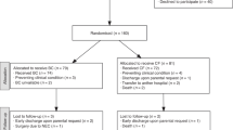 Participant flow chart and clinical characteristics of the entire cohort included in the intervention study are shown in Fig. 1 and Table 2, respectively. The two fortification groups did not differ in their clinical characteristics, but differences in nutritional intake were observed. Compared with CF infants, BC infants received slightly higher enteral milk volumes (both p ≤ 0.01) and total enteral protein (p = 0.05–0.08) at T1 and T2. There was a tendency to a lower proportion of BC infants being fed primarily with MOM at T2 (p = 0.07, Table 2).
