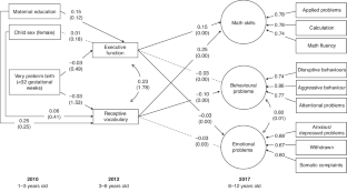 Very preterm children face developmental challenges at school entry, yet the mechanisms underlying these difficulties during preschool remain unclear. We examined the association between very preterm birth and children’s math skills, behavioural, and emotional difficulties in children aged 8–12, and the mediating role of executive functions and receptive vocabulary from ages 3 to 6.